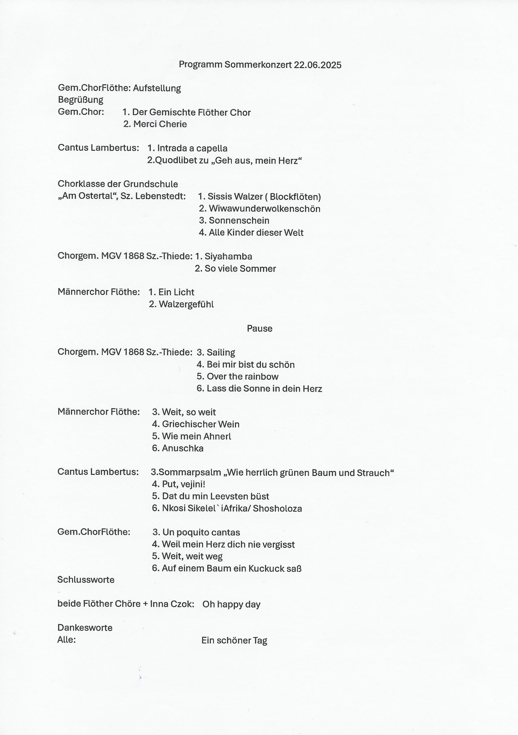 Programm zum Sommerkonzert 2025